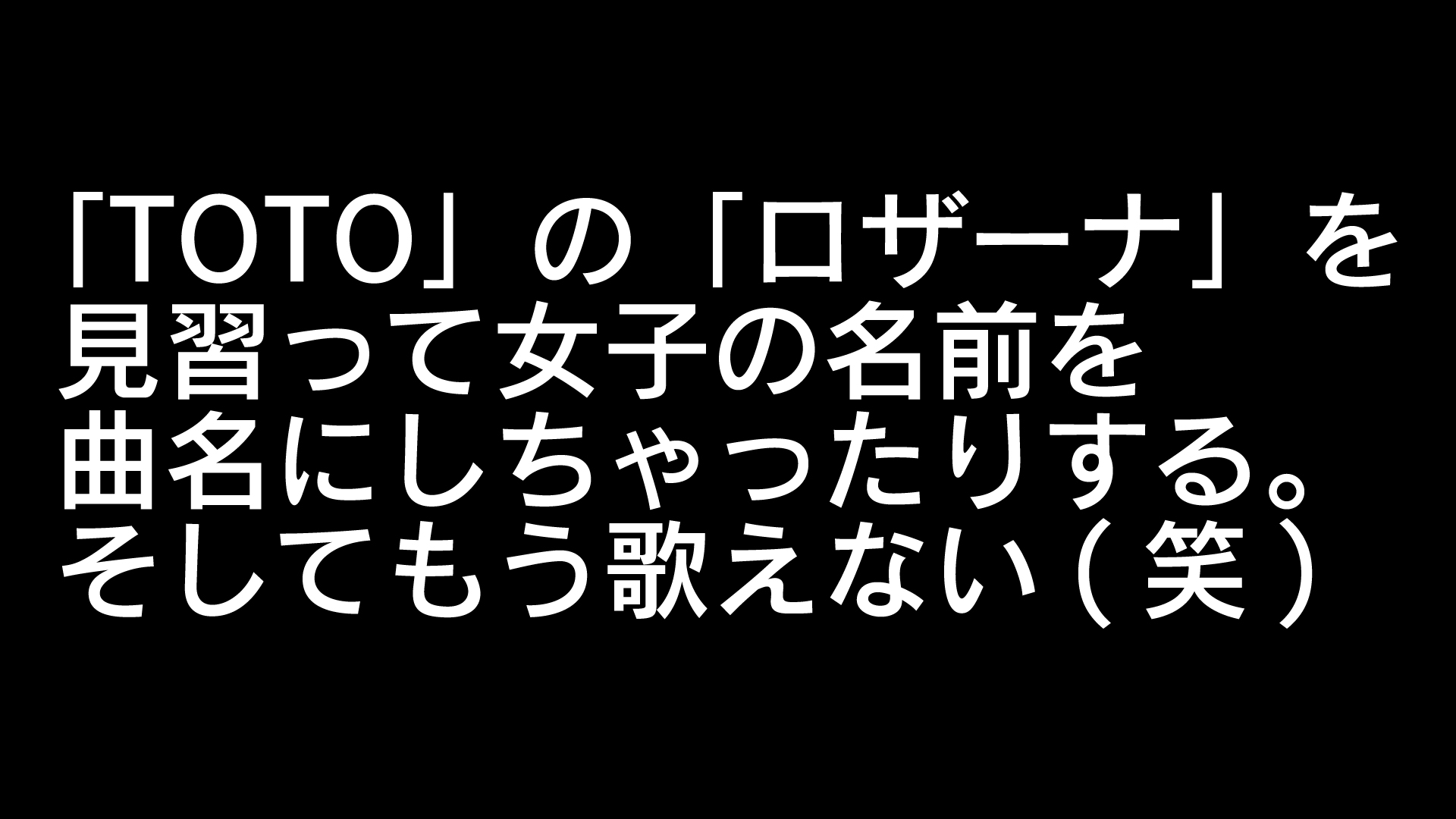 「TOTO」の「ロザーナ」に見習って女子の名前を曲名にしちゃったりする。そしてもう歌えない(笑)